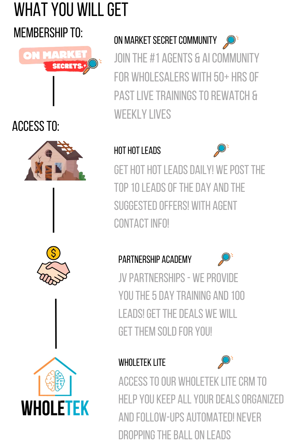 âś… You get access to Wholetek Lite, an automation-packed CRM to streamline your workflow.